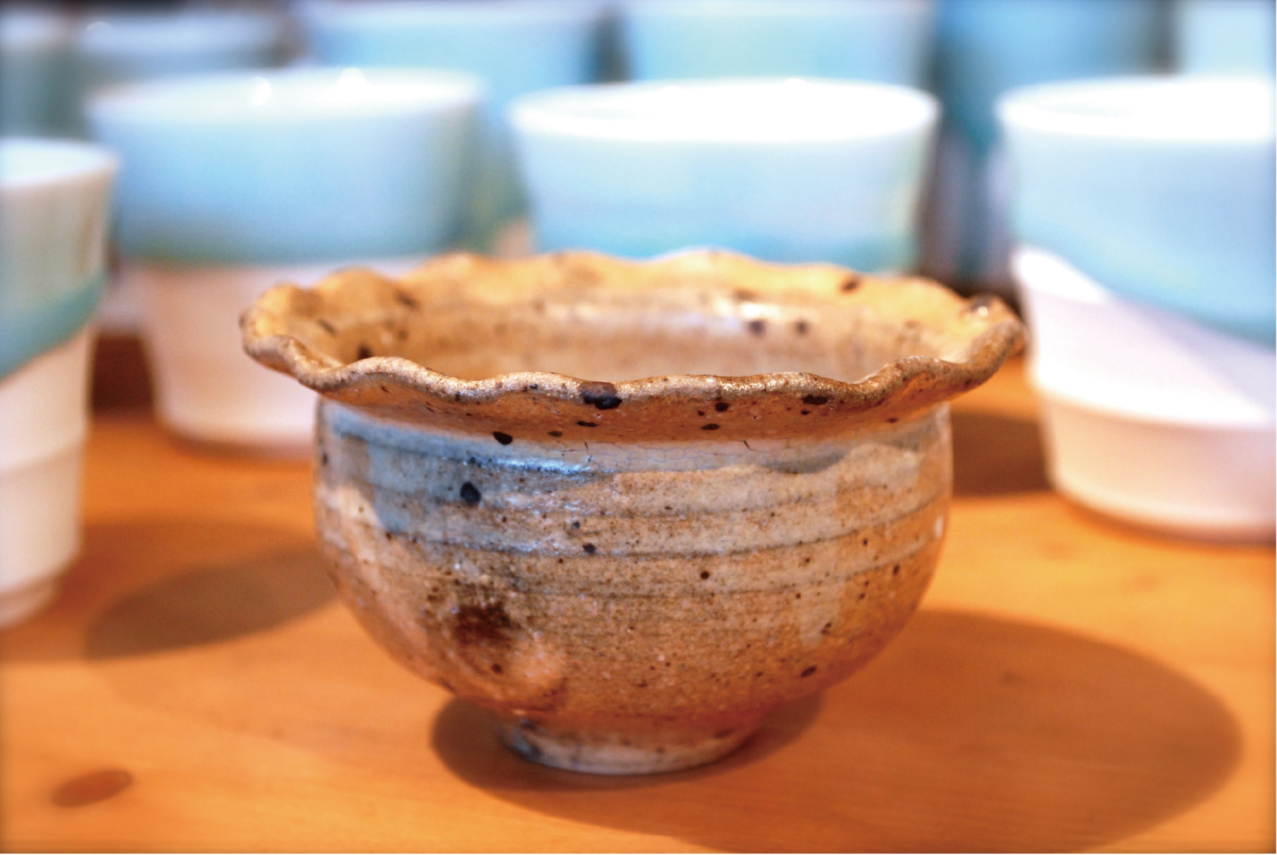 それから、こちらは雫シリーズからはグッと趣が変わって、粉引きの器。